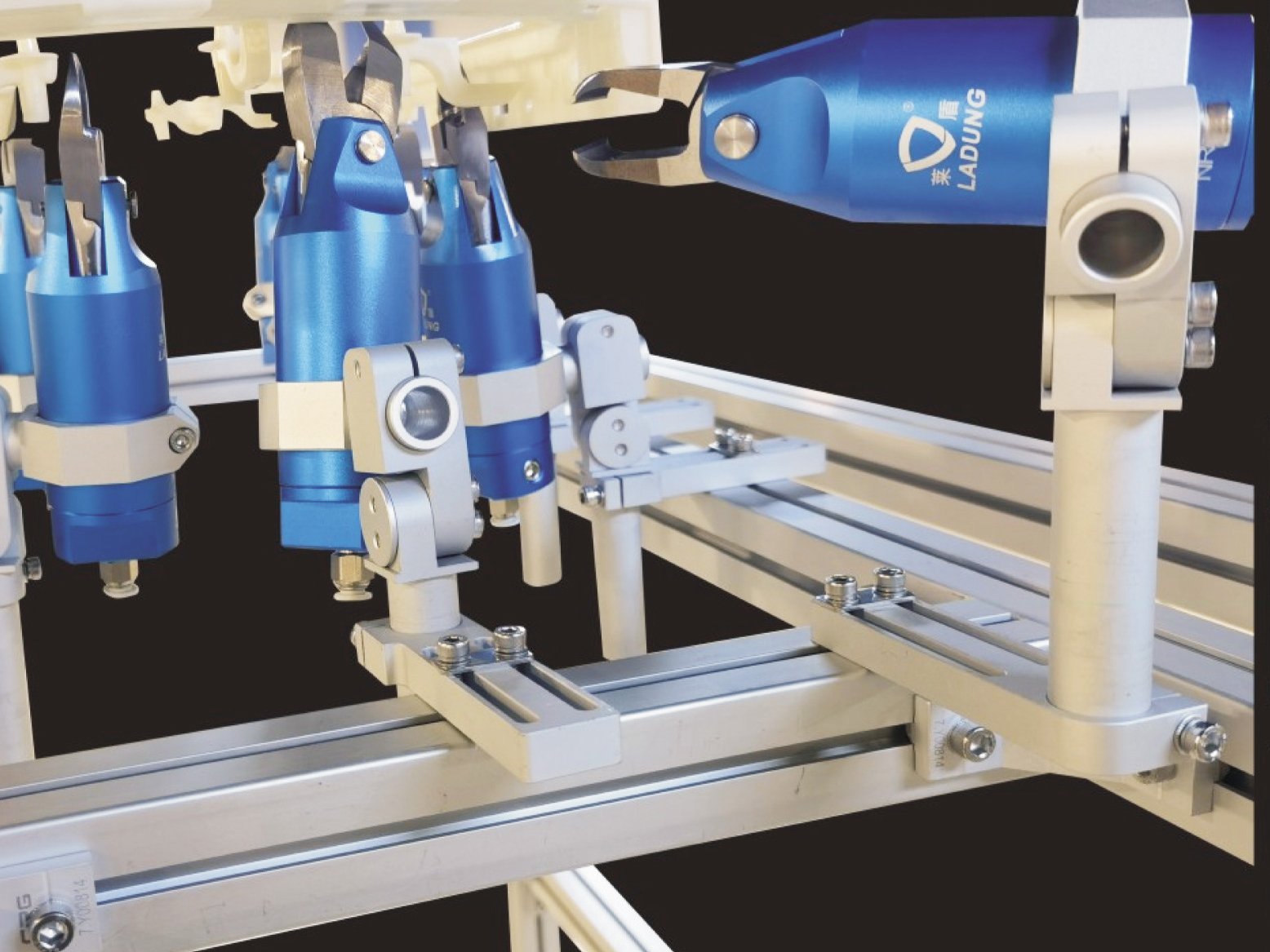 這是NR系列,圓型機械自動化氣動剪刀;圓型自動化氣剪,優點在於:裝在配套的夾具上面,可360度