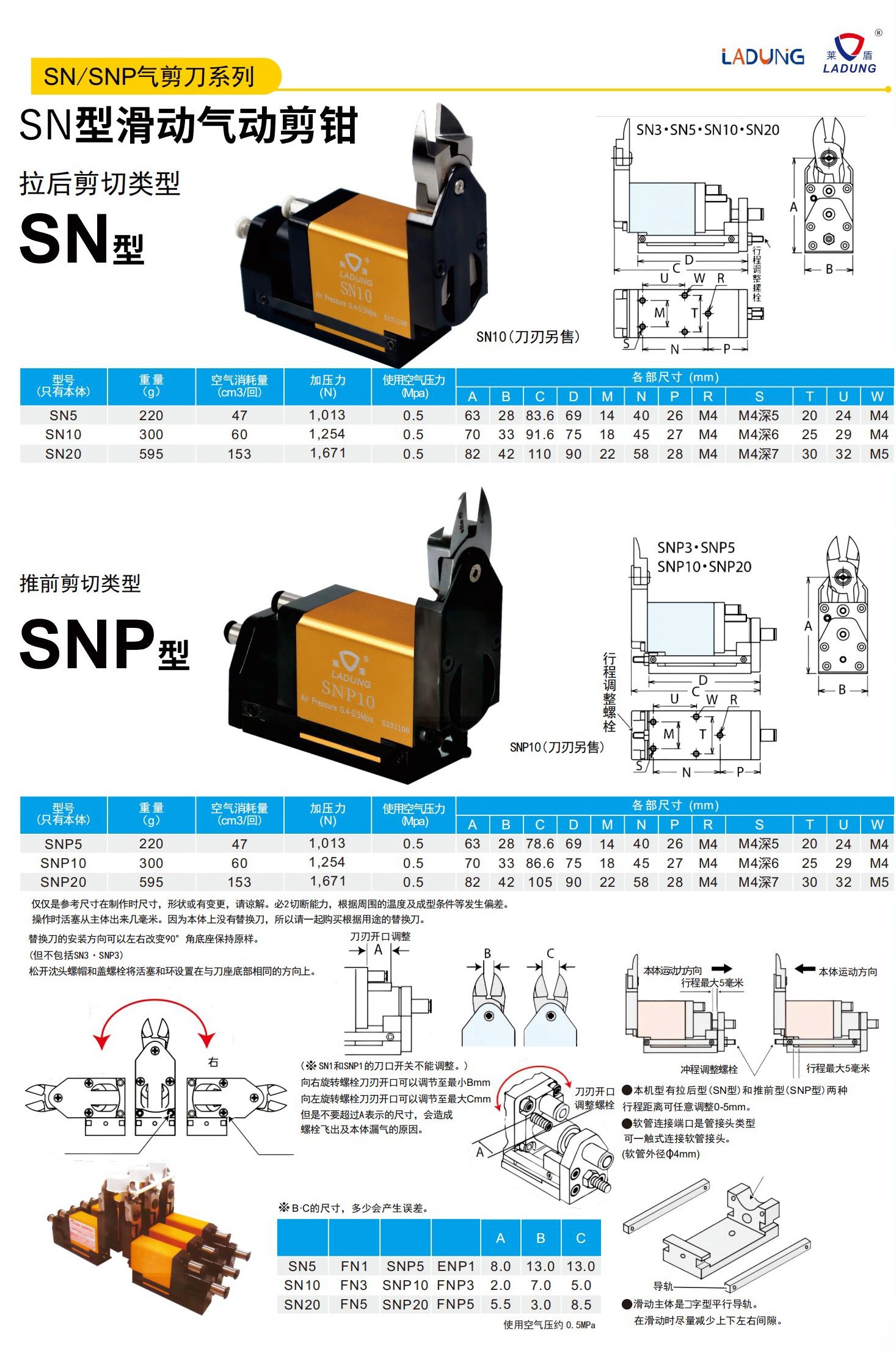SN系列位移设计,刃⼝开度可调,剪切更紧贴产品,剪切精度更⾼,效果更好。